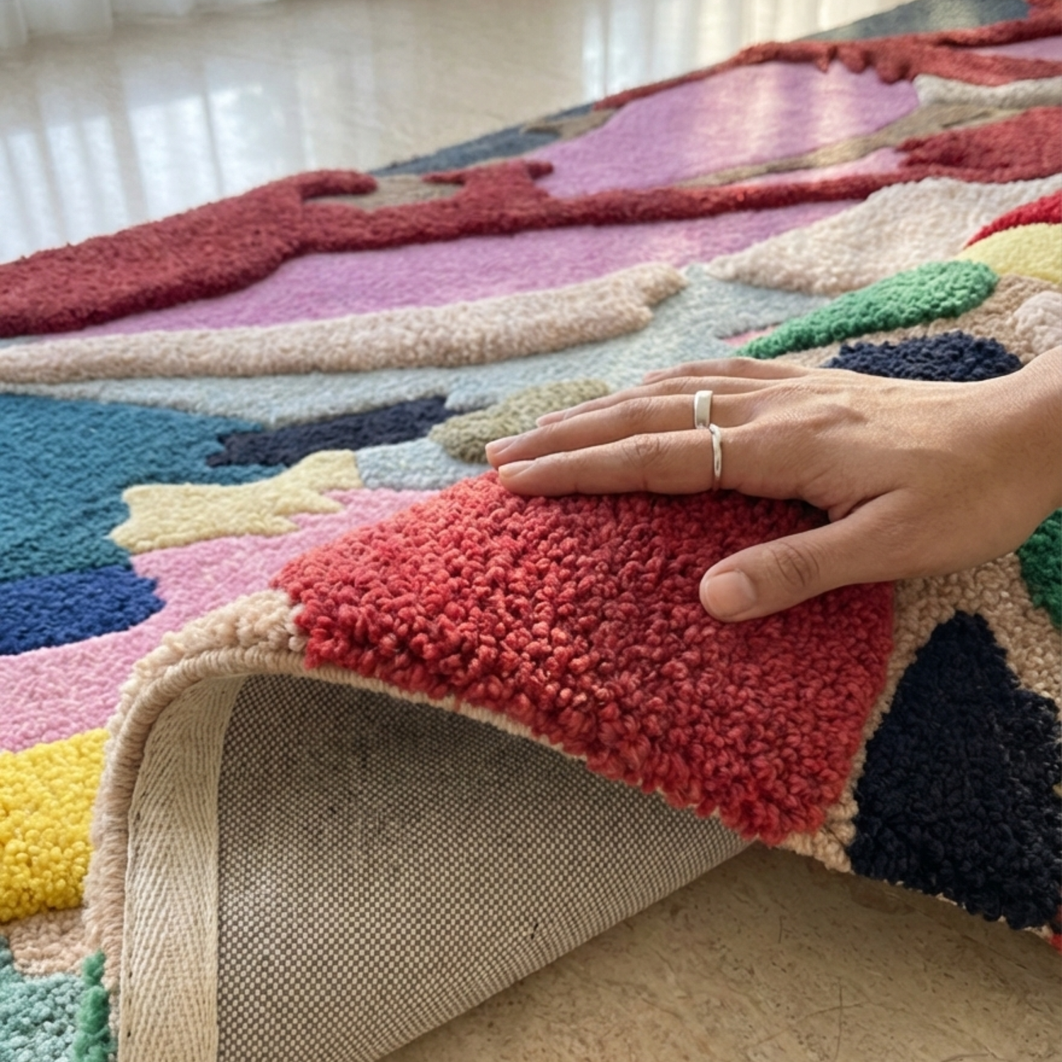 - Construction: Hand-tufted